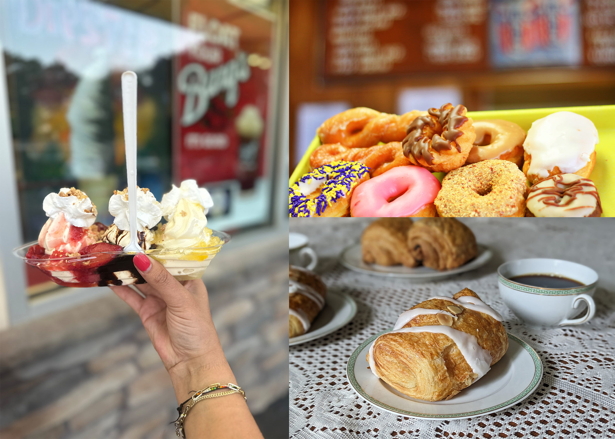 (Clockwise from top left): Winner of Best Ice Cream is Whippy Dip, winner of Best Donuts is Mighty Fine, and winner of Best Bakery, Best Dessert, and Best Bread is Herb and Honey Bakery. (Photos: Jessica Hunter / Erin Phillips)