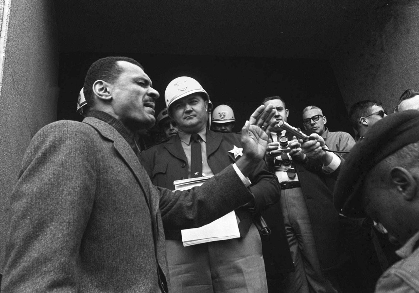 Dr. Reverend Cordy Tindell "C.T." Vivian of the Southern Christian Leadership Conference stands before Selma, Ala. Sheriff Jim Clark after a protest march in 1965. Clark and Alabama State Police were condemned for their "Gestapo-like" approach to suppressing the activists. AP Photo.