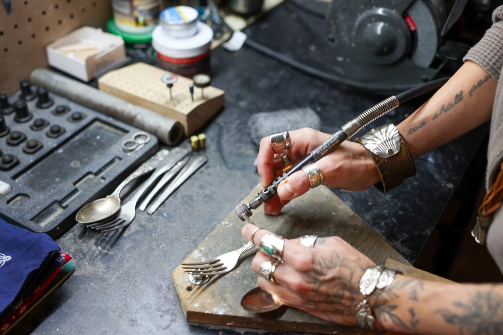 Her love for the craft started when she was just 10 years old. Having spent countless hours with her grandparents, Wolfe developed a love for items that tell a story. She once persuaded her grandmother to part with a piece of her silverware collection, which her grandfather then helped her transform into jewelry in the garage. This moment solidified her passion for taking cherished, historical items and giving them a second, wearable life.