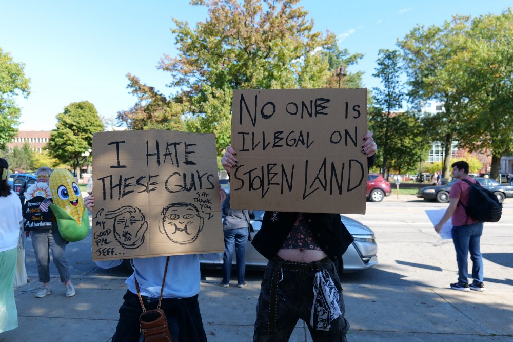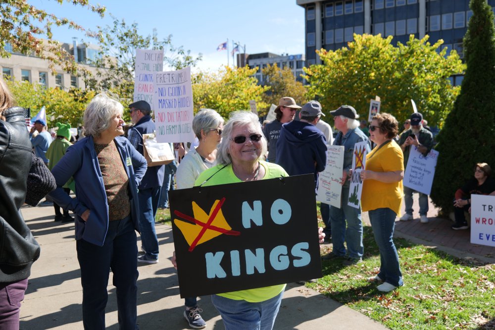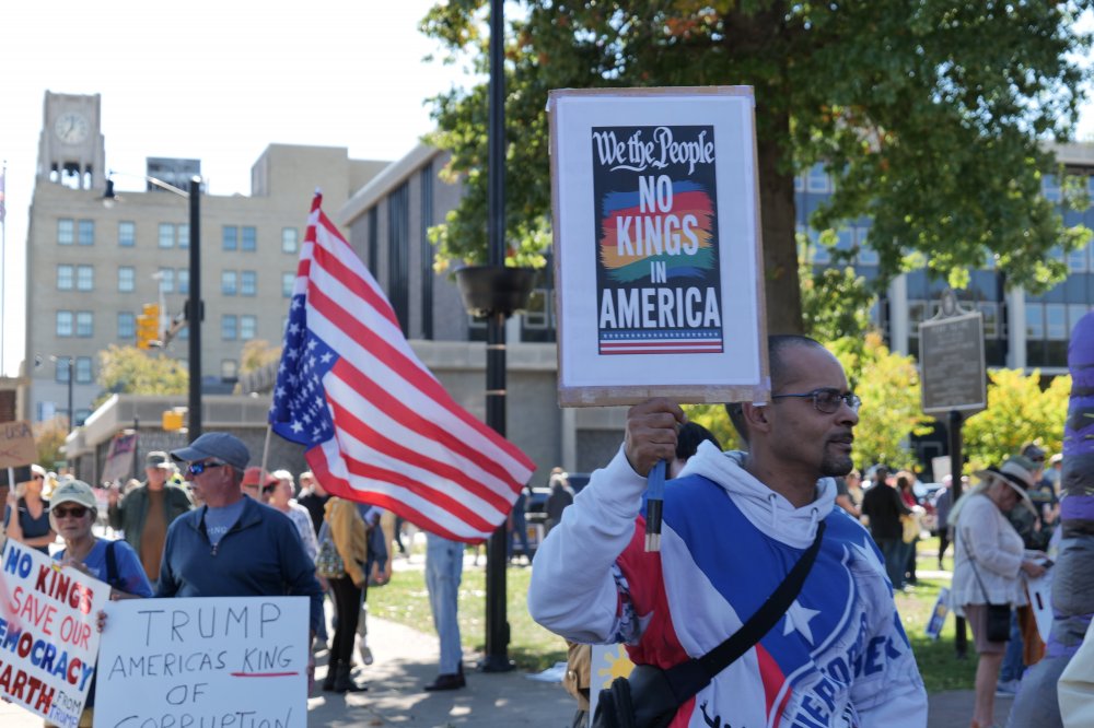 By the hundreds, members of the Erie community gathered in Perry Square on Oct. 18 for one of thousands of No Kings protests nationwide. The demonstrations across the country amassed nearly 7 million participants. The No Kings protests serve as a response to perceived authoritarian actions by the Trump administration, including deportations without due process, deploying the national guard in major cities, and making major cuts to healthcare, education, and environmental protection. The protesters declare that the United States is a democracy and has no king.